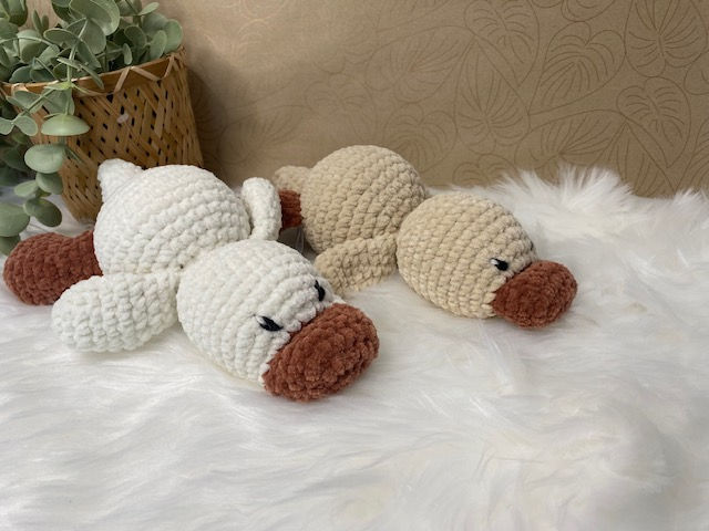 Eend Guusje is een heerlijk zachte knuffel om mee te knuffelen. Leuk om als (kraam)cadeau te geven. Guusje is ca 22cm lang en heeft geborduurde oogjes en zo dus ook veilig voor de allerkleinste. Eend Guusje is handgemaakt met chenille garen en verkrijgbaar in 2 kleuren.