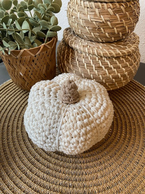 Ga aan de slag met het haakpatroon van deze leuke pompoenen. In dit patroon zijn 3 maten voor de pompoen beschreven. Pompoen small wordt ca 14x10 cm, Pompoen medium wordt ca 16x12 cm en pompoen L wordt ca 20x 17cm. Mocht je ander garen gebruiken dan aangegeven dan zullen ze, afhankelijk van het garen dat je gebruikt, groter of kleiner worden. De pompoenen zijn gehaakt met Barbante van Huisje van Katoen een 100 % katoen garen en haaknaald 5.5mm