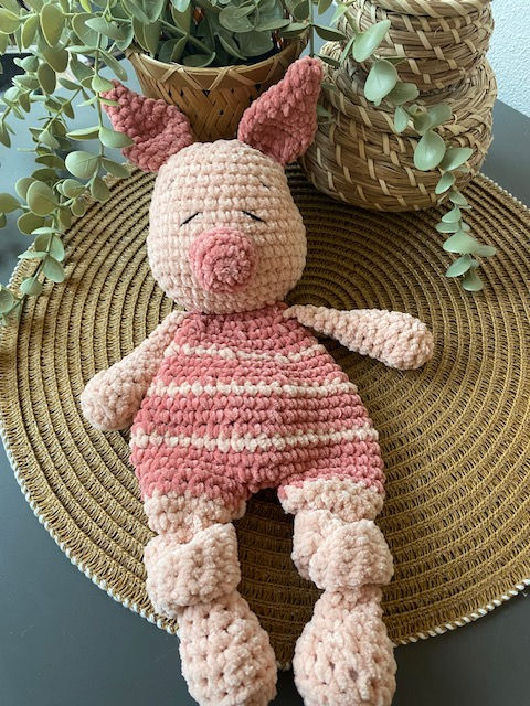 Maak kennis met deze onweerstaanbaar zachte handgemaakte snuggle, Knorretje. Met zijn vriendelijke snuit, pluizige lijfje en soepele vorm is hij de perfecte knuffelmaat voor je kleintje.